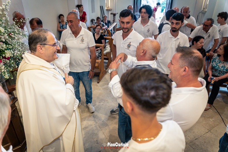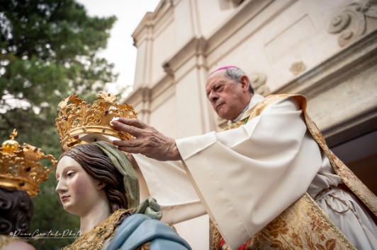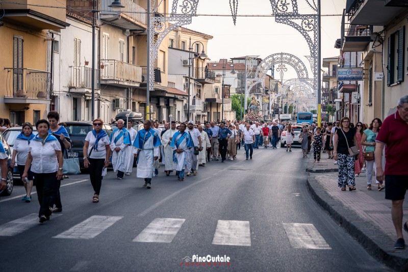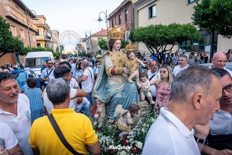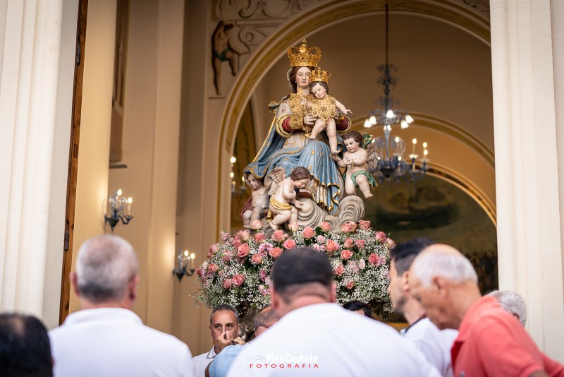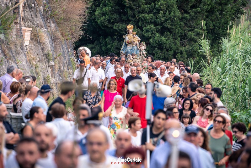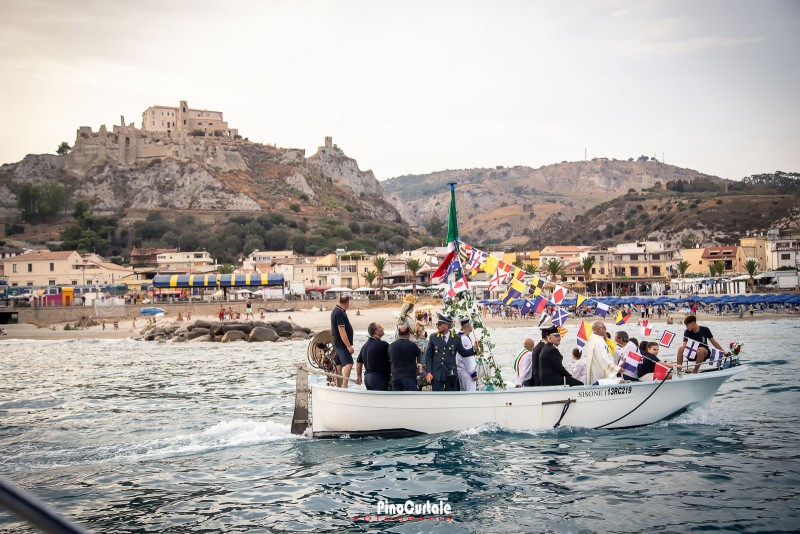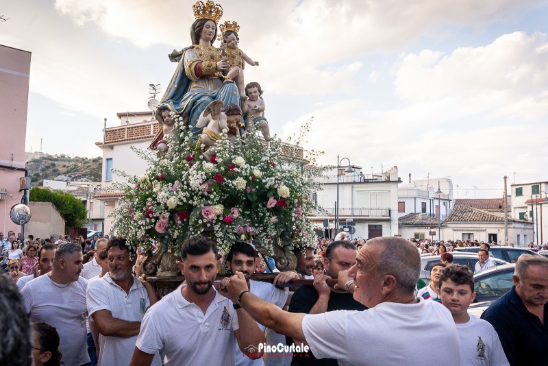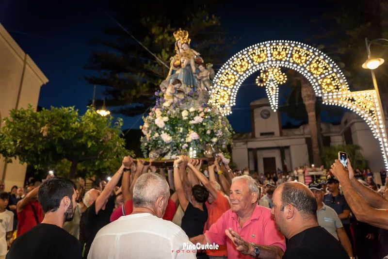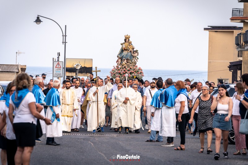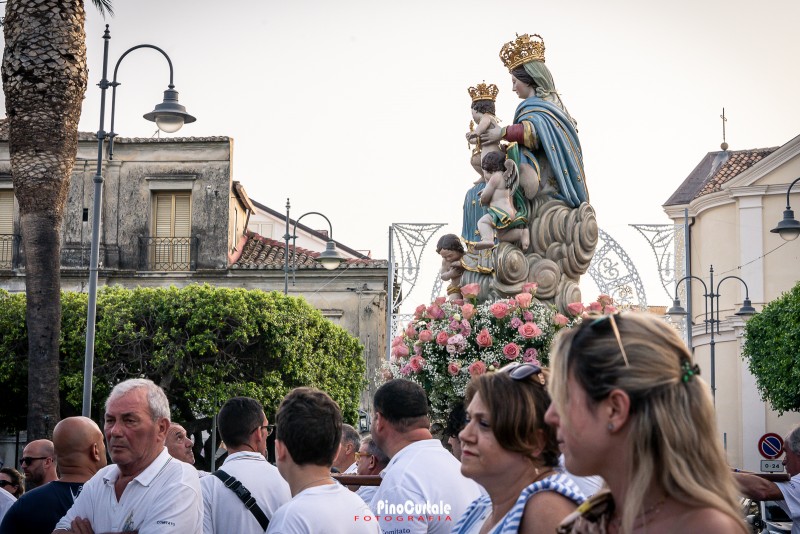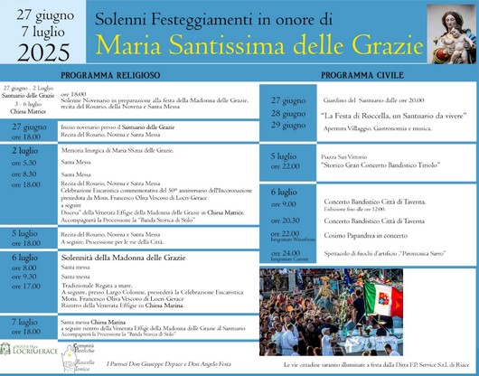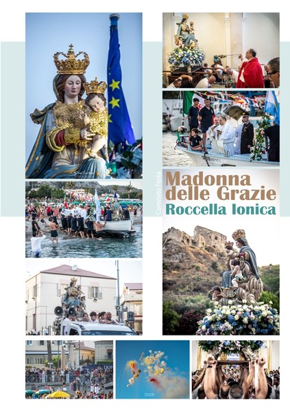 O Madonna delle Grazie e speciale Regina di Roccella, a voi umilmente ricorriamo e fiduciosi invochiamo il Vostro patrocinio. Il vostro occhio di Madre si posi su di noi e ci consoli nelle nostre afflizioni; sul nostro mare e lo abbonacci nei periodi della procella, sui pescatori figli vostri e li conforti di abbondante pesca; sulle nostre campagne e le renda ubertose di biade e di frutta. Riguardate con materna tenerezza i peccatori e convertiteli, gl’infermi e risanateli, i poveri e soccorreteli, i nostri fratelli emigrati ed assisteteli nelle loro dure fatiche, la gioventù e gli operai e preservateli dalla bestemmia, dalla irreligione e dal vizio. Il vostro sguardo scenda pietoso sù i morenti e li salvi; sulle anime del purgatorio e le sollevi al cielo, sulla Chiesa e accresca i suoi trionfi, sui sacerdoti e li santifichi, sulla società e torni in lei la sua spirata pace. Guardate con gli occhi di misericordia questa nostra necessità e intercedete per noi.
